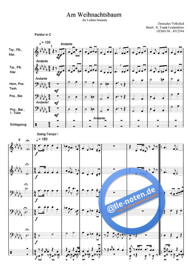 1. Stimme in Bb und C 2. Stimme in Bb und C 3. Stimme in Bb, C, Eb und F 4. Stimme in Bb und C