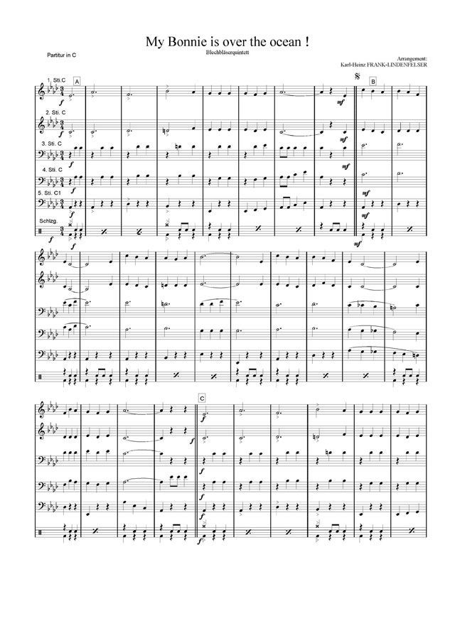 Norddeutsches Volkslied aus Wester-Vesede. Besetzung: Blechbläserquintett, 1. Stimme in Bb und C, zweite Stimme in B und, 3.Stimme in B, C, Eb und F, 4. Stimme in Bb und C, 5. Stimme inBb und C