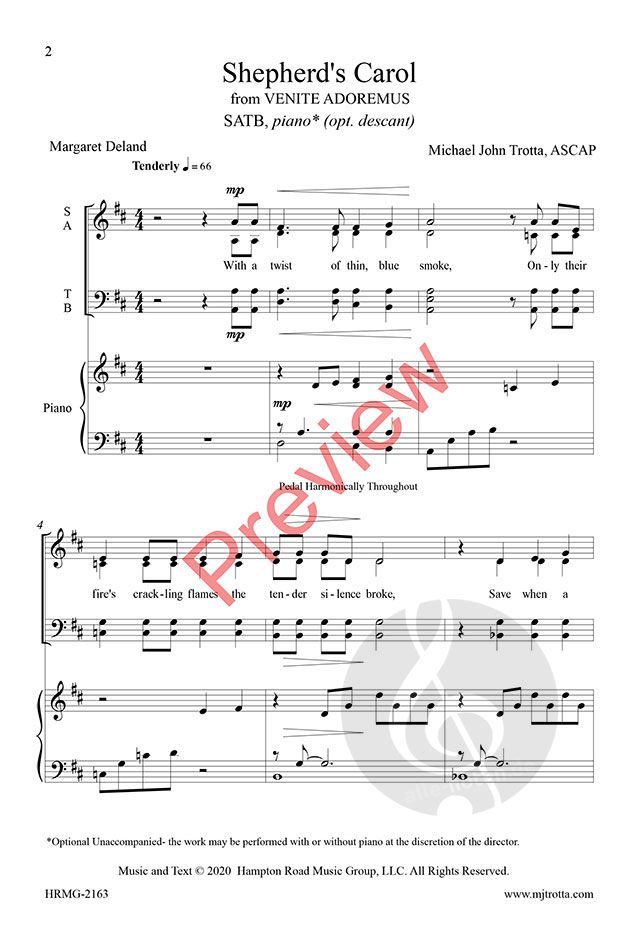 Üppige Harmonien und lebendige Bilder schaffen eine absolut großartige A-cappella-Vertonung des Textes von Margaret Deland, der die Weihnachtsgeschichte aus der Sicht der Hirten schildert, die ruhig s...