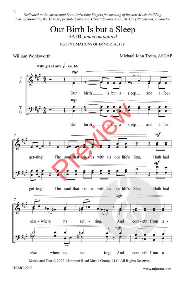 Eine atemberaubende A-cappella-Vertonung verwendet einfache Rhythmen und enge Harmonien, um die kraftvollen Bilder von Wordsworths zeitlosem Text zu vermitteln: "Unsere Geburt ist nur ein Schlaf und e...