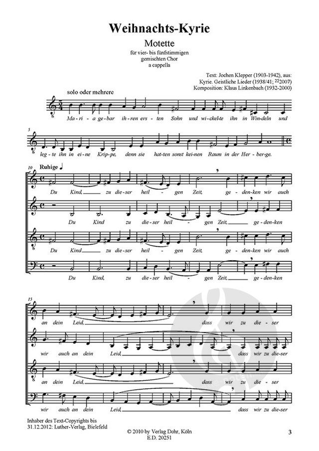 Gemischter Chor (4-st.) (Gemischter Chor (5-st.)) ; Partitur, Chorpartitur. Format: 10 S. - 29,7 x 21 cm.