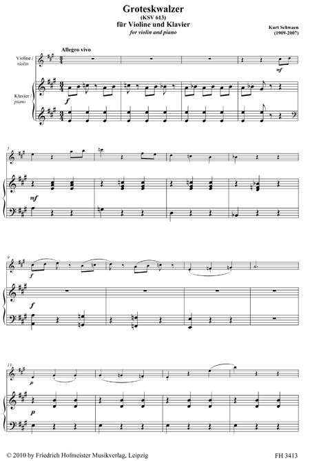 Kurt Schwaen komponierte seinen 'Groteskwalzer' für Violine und Klavier (KSV 613) Anfang November 1998. Im Jahre 2001 überarbeitete Schwaen die Skizze des Walzers. 2007 schließlich folgte die letzte A...