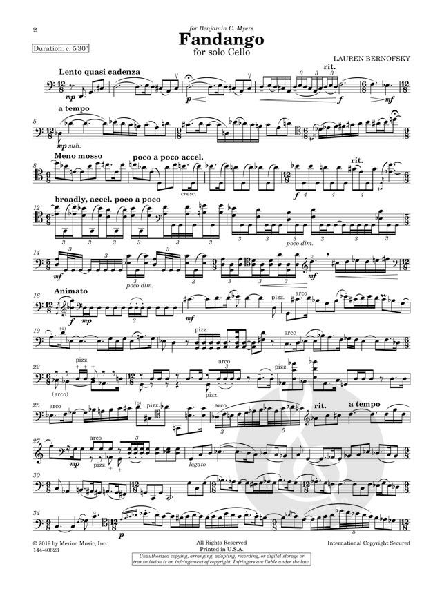 Radiating all the heat of passionate Spanish dance music; Lauren Bernofsky's Fandango uses the solo cello both for the strumming and rhythmic effects of Flamenco; and also for the sensual lyricism of...