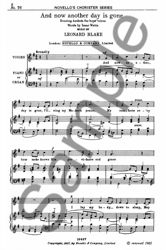 Written for Unison voices, SATB choir and organ.