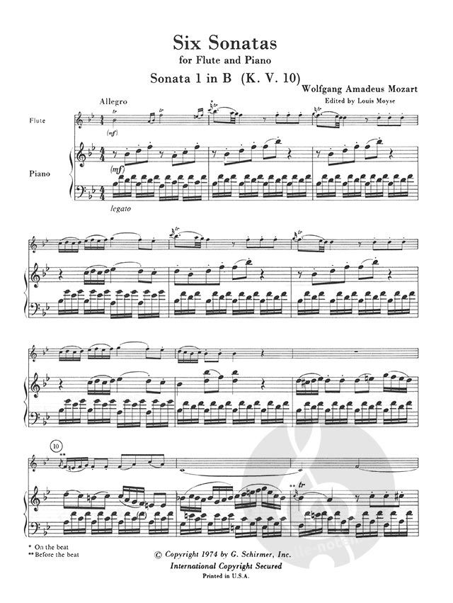 The Six Sonatas for Flute and Piano presented in this edition were written by Mozart when he was eight years old. They are dedicated to the Queen of England. Edited by Louis Moyse.