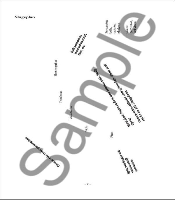 - Piccoloflöte, Klarinette, Posaune, Klavier, Violine und Cello