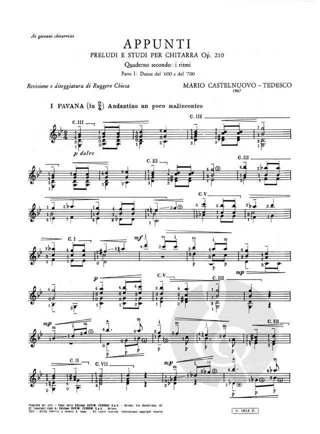 Some of the most beautiful Castelnuovo-Tedescos pieces are now available again as re-editions from the Ricordi Catalogue for piano solo.