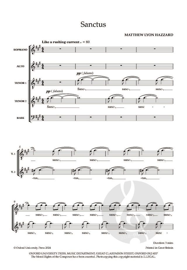 Hazzard's enchanting Sanctus, setting text from the Latin Mass, captures the feeling of a rushing current throughout. Suitable for concert use, this piece features imaginative text-setting and driving...