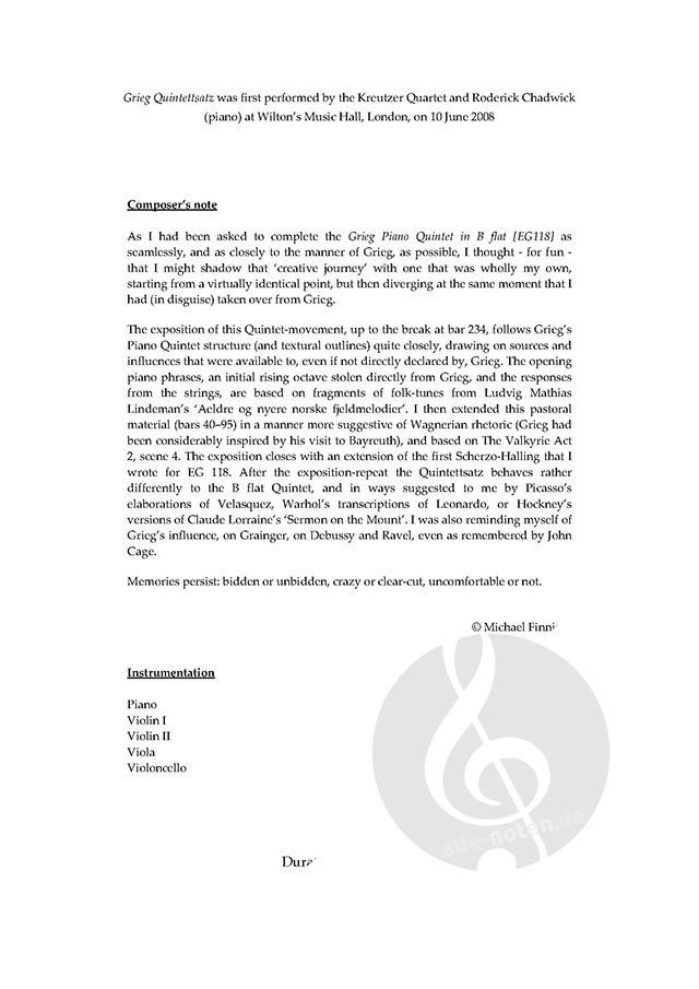 - Klavierquintett (Klavier, 2 Violinen, Viola und Cello)