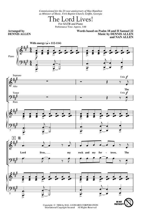 A paraphrase of Psalm 23, Dennis and Nan Allen once again give us a heartfelt anthem of praise useful by adult and youth choirs alike. Smooth vocal lines, creative harmonies and a great marriage of te...