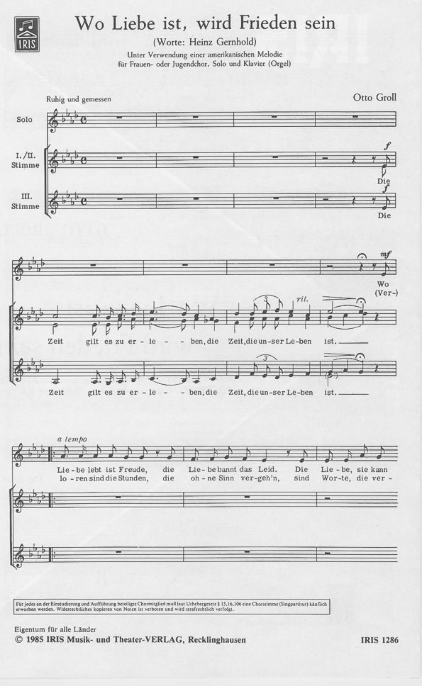- Solo, Frauenchor (3-stimmig) und Klavier