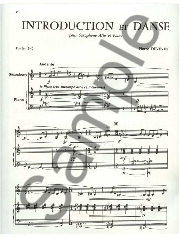 Devevey Introduction Et Danse Lm018 Alto Saxophone & Piano Book