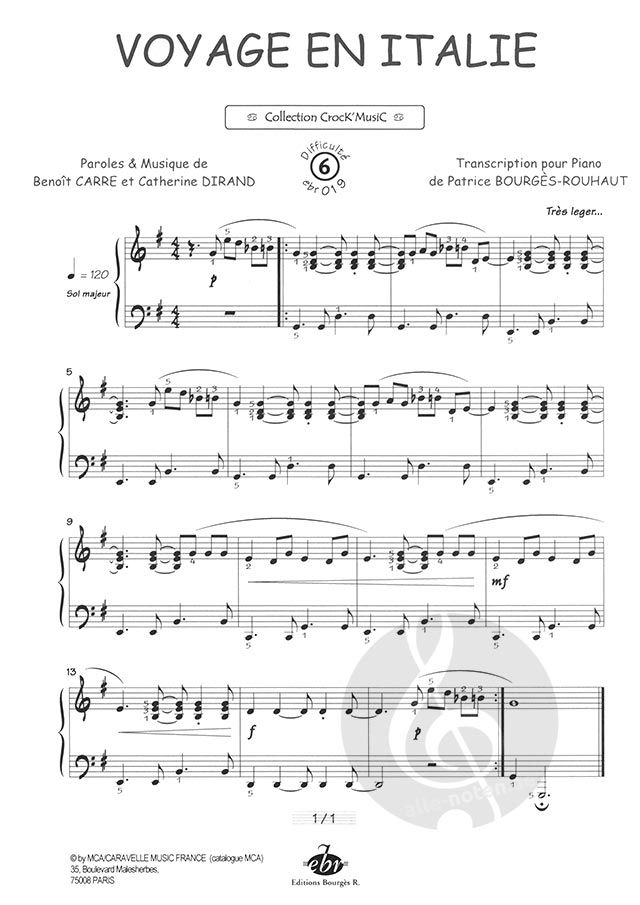 Diese Partitur stammt aus der Sammlung CrocK'MusiC, die aus Transkriptionen französischer Lieder für das Klavier besteht, begleitet von ihren Texten. Diese Partituren, die als Einzelblätter angeboten...