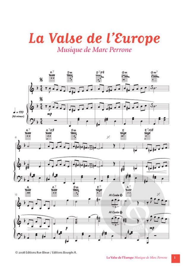 Der Valse d'Europe wurde vom Akkordeonisten Marc Perrone anlässlich der Europäischen Kultursaison 2008 eigens komponiert. Dieser Walzer wird in mehreren französischen Städten bei den Bällen zum Natio...