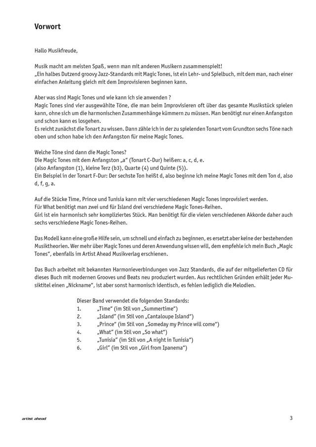 Ein Lehr- und Spielbuch, mit dem man nach einer einfachen Anleitung gleich mit dem Improvisieren beginnen kann. 'Magic Tones' sind vier ausgewählte Töne, die man beim Improvisieren oft über das gesamt...