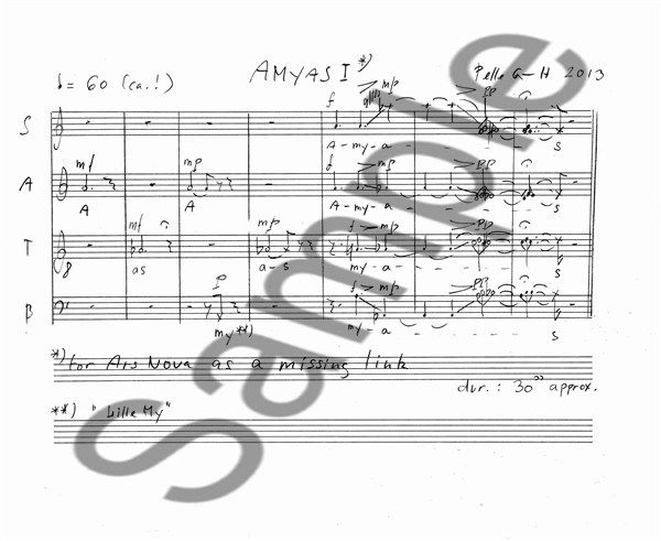 Pelle Gudmundsen-Holmgreen's 2013 piece Amyas, scored for SATB.