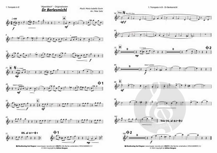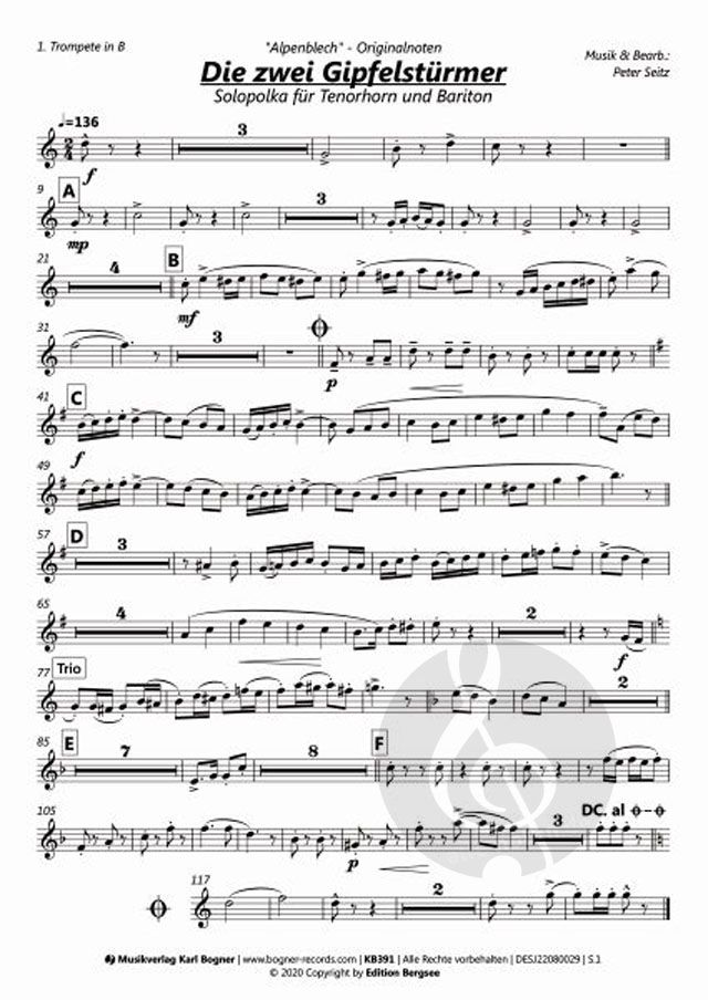 Partitur, 1. Trompete in B, 2. Trompete in B, 3. Trompete in B, Tenorhorn in B, Bariton in C, Bariton in B, Tuba in C, Schlagzeug