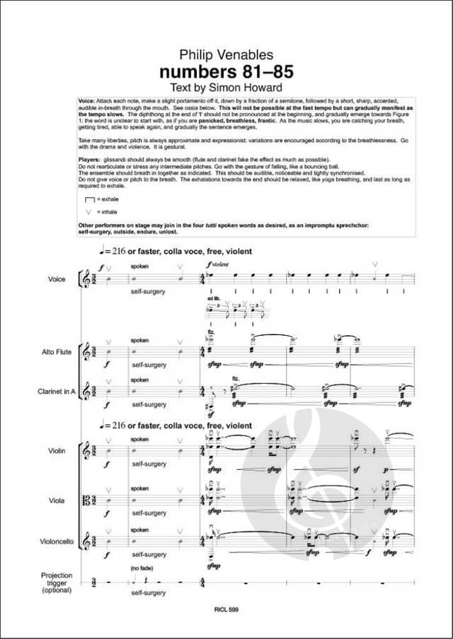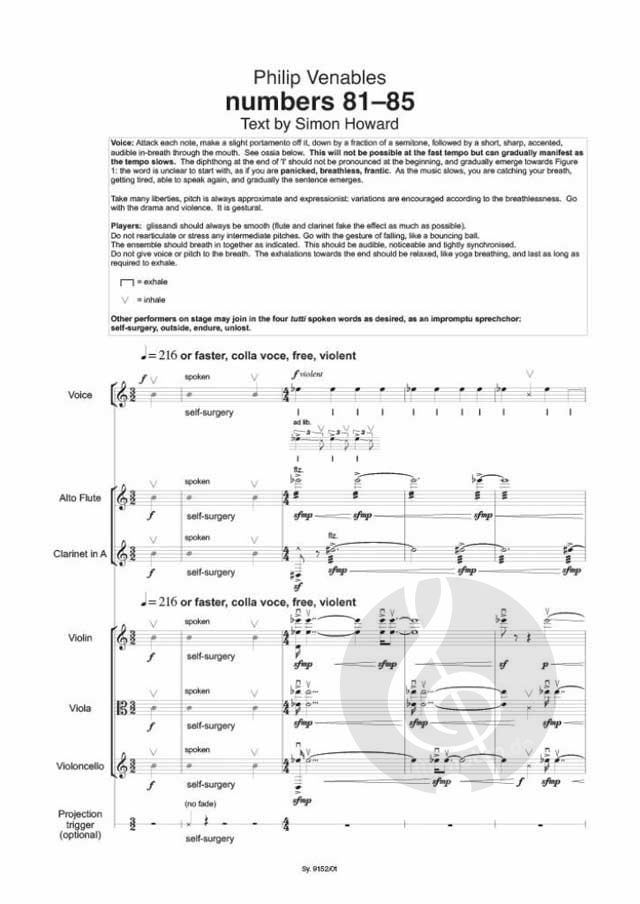 - Gesang, Altflöte, Klarinette, Violine, Viola und Cello