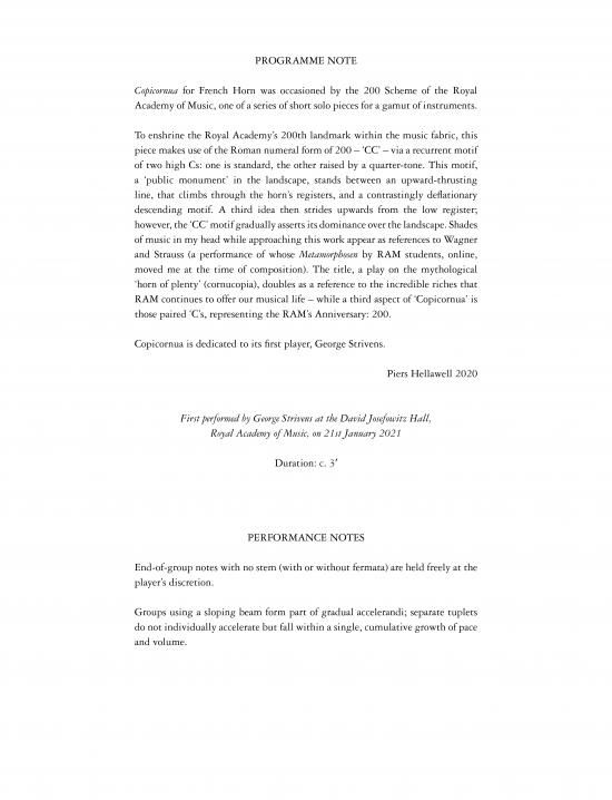 Copicornua is a contemporary solo work for French Horn written for Royal Academy of Music's bicentennial. To enshrine the Royal Academy's 200th landmark within the music fabric, this piece makes use o...