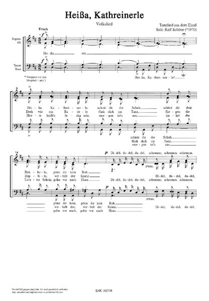 Besetzung: SATB Satz (Tanzlied aus dem Elsass)