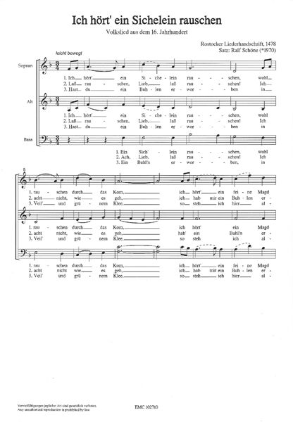 Besetzung: SATB Satz (Volkslied aus Thüringen); Musik: Bruno Leipold (1879-1949); Text: Paul Blauert