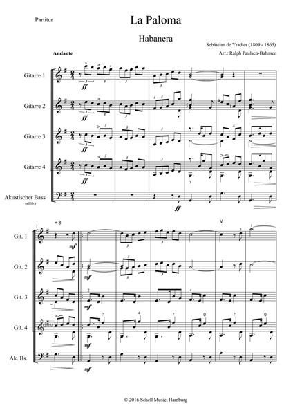Das Lied 'La Paloma' stammt aus der Feder des spanischen Komponisten Sebastián de Yradier (1809 - 65). Die Melodie ist in den meisten Ländern der Erde überaus bekannt, und es existieren recht untersch...