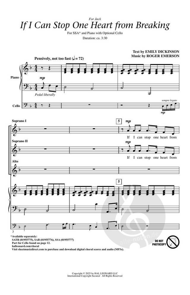 - Gemischter Chor (SATB), Cello und Klavier