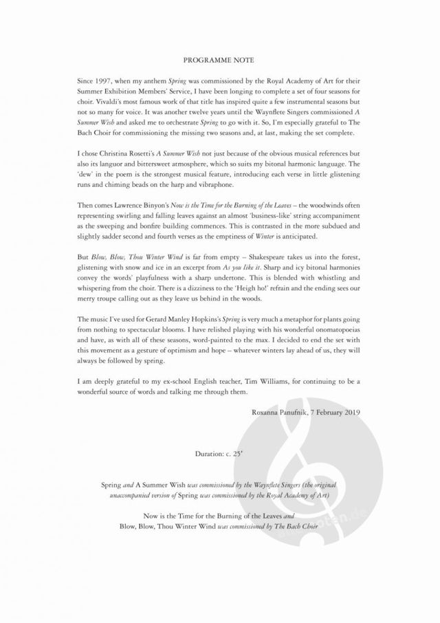 The optional string quartet parts for Floral Tribute, composed by Roxanna Panufnik with words by Simon Armitage in digital sheet music format [EP73719a].
