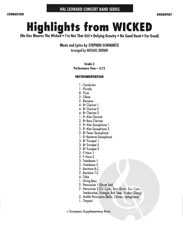 Hier ist eine sehr spielbare und dennoch wirkungsvolle Vertonung von Highlights aus dem Broadway-Hitmusical über die böse Hexe des Westens. Enthält: No One Mourns the Wicked, Dancing Through Life, Def...