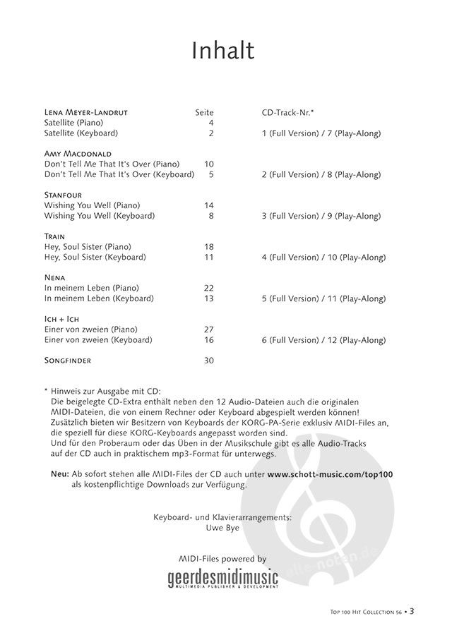 2 Hefte in einem: Klavierarrangement sowie Melodieausgabe für Klavier, Keyboard, Gitarre, Gesang, Flöte oder Violine zum Herausnehmen.