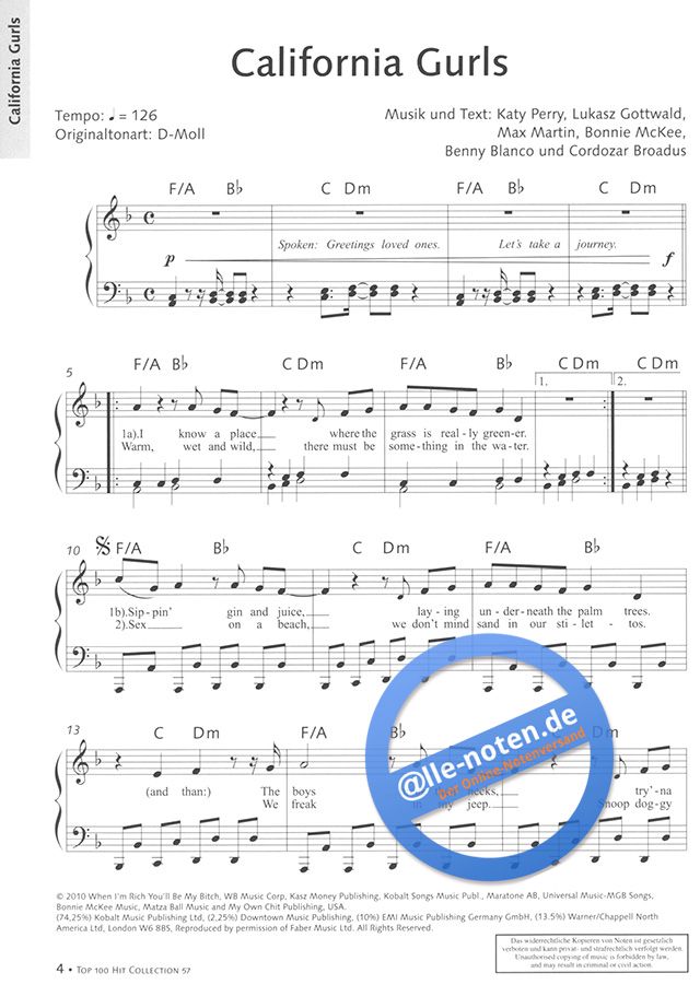 Mit der 'Top 100 Hit Collection' immer die aktuellsten Songs aus den Charts auf dem Notenständer haben: Die Hits des Sommers einer hochkarätigen Auswahl an Popstars wie Katy Perry, Linkin Park oder Al...