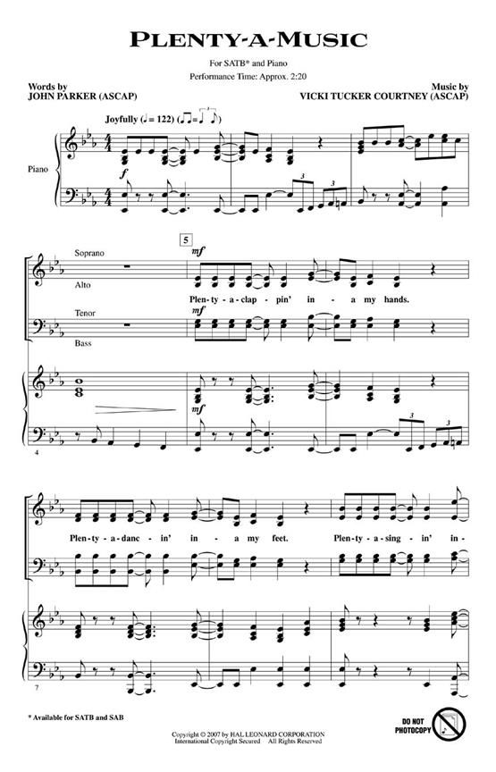 Celebrate the power of music with this joyful work that's easily learned and effective in performance! Plenty-a-singin' in-a my heart, plenty-a-music down in-a my soul. Available for SATB and SAB. Per...