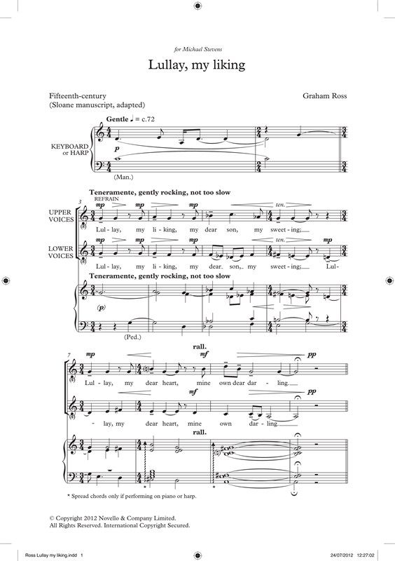 Lullay, my liking is scored for accompanied two-part choir, allowing for various upper-/lower-voice combinations: two-part trebles or sopranos, upper voices only (S/A), or men only (T/B). If performed...