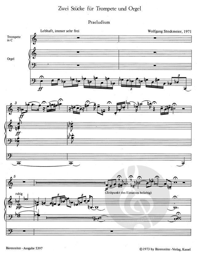 Praeludium und Elegie. Der Partitur ist eine Spielpartitur beigelegt