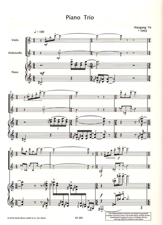 Xiaogang Ye (geb. 1955) ist einer der bekanntesten Komponisten in China. Er studierte am Central Conservatory of Music of China, war 1. Preisträger des Alexander Tcherepnin Composition Competition und...