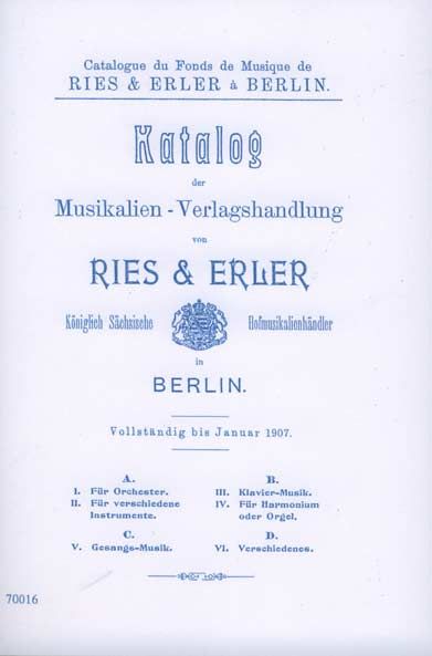 Archivkatalog Ries & Erler Ed. 1881-1924