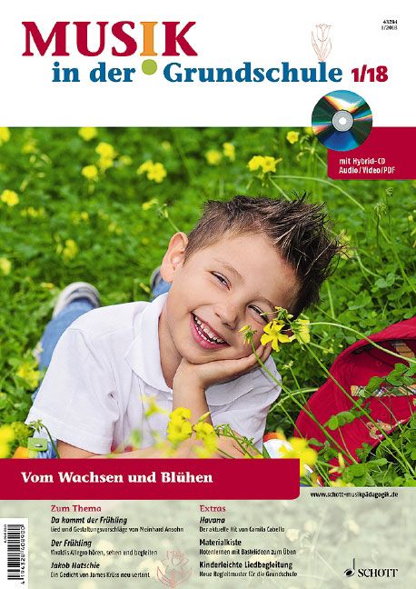 THEMA: Vom Wachsen und BlühenMeinhard Ansohn: Vom Wachsen und Blühen - Klasse 1-6DER AKTUELLE HITFriedrich Neumann: Havana - Klasse 4-6DER AKTUELLE HITBettina Ohligschläger, Munja Wuschovius: Fight Song - Klasse 5-6MATERIALKISTEFrigga Schnelle: Noten lernen leicht gemacht - Klasse 3-6MINIKLASSIKFrigga Schnelle, Anastasia Schönfeld: Antonio Vivaldi: Der Frühling (zum Thema) - Klasse 1-6SINGENHeinrich Herlyn: Gut geniest ist halb gesungen (zum Thema) - Klasse 3-6EXPERIMENTIEREN MIT MUSIKPetra Hügel: Kinderleichte Liedbegleitung - Klasse 2-6GROSSE UND KLEINE ANLÄSSEMarion E. Bücher-Herbst: Luther - Gott ist Liebe - Klasse 3-6MAGAZINNeuesSchott-ShopFortbildungenRezensionenAutorInnenImpressumAudio: Afrique Tango Da kommt der FrühlingDa kommt der Frühling - PlaybackThe First Garden Havana - AusschnittRumba - Spielsatz Fight Song Der Frühling - aus: Die vier JahreszeitenJakob Hatschie Jakob Hatschie - PlaybackHatschi-Hatschi-Aha Hatschi-Hatschi-Aha - Playback Old MacDonald had a FarmOld MacDonald had a Farm - Playback Wenn der Frühling kommtWenn der Frühling kommt - Playback Chor der ArmenChor der Armen - PlaybackZahlen-Blues Zahlen-Blues - Playback Läster Rap - PlaybackGott ist Liebe Gott ist Liebe - PlaybackVideo: Fight Song - TanzWechselwischer einfach (1) Wechselwischer doppelt (2) Wechselwischer Dreitakt I (3) Wechselwischer Dreitakt II (4)PDF: Der Frühling - Sonett (AB 3) Methodische Hinweise Hatschi-Hatschi-Aha - hochdeutscher Text (AB 2) Chor der Armen - Klavierbegleitung (AB 1) Zahlen-Blues - Klavierbegleitung (AB 2) Gott ist Liebe - Klavierbegleitung (AB 3)