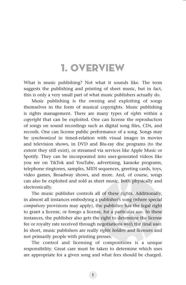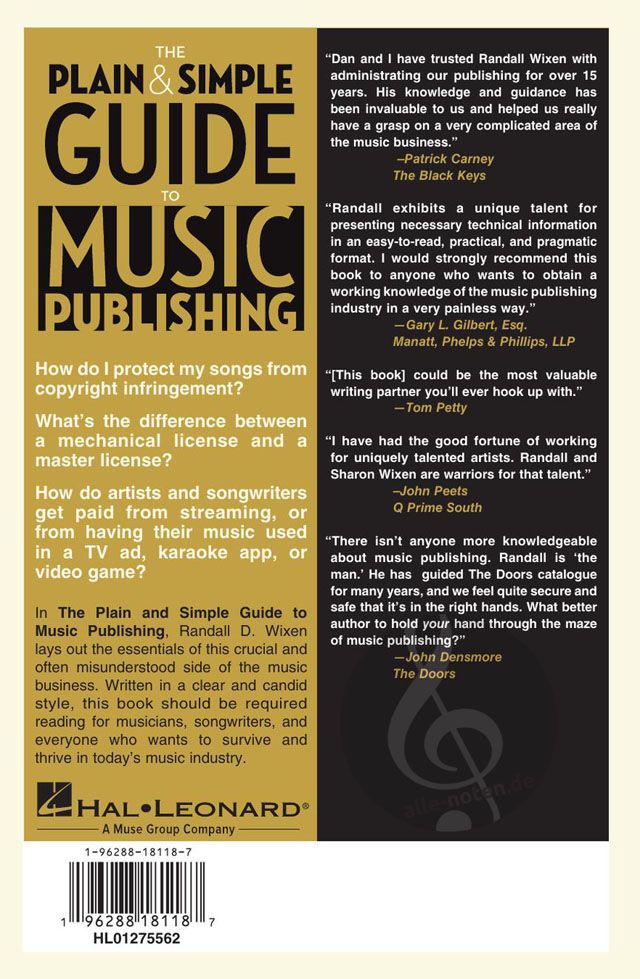 Das Musikverlagswesen ist einer der komplexesten Bereiche des Musikgeschäfts, und doch kann es der lukrativste Einkommensbereich für Musiker sein. Der Experte und Branchenveteran Randall Wixen präsentiert einen klaren, prägnanten Ansatz, wie das Musikverlagswesen heute funktioniert. Das Buch richtet sich an musikalische Laien und Songwriter, enthält aber genug Substanz, um auch für diejenigen interessant zu sein, die bereits in der Branche tätig sind. Enthält ein Vorwort von Tom Petty. Die behandelten Themen reichen von mechanischen, Aufführungs- und Synchronisationsrechten bis hin zu Sub-Publishing, ausländischen Rechten, Grundlagen des Urheberrechts, Arten von Verlagsverträgen, Ratschlägen zur Vertretung und mehr. Ein Blick von ganz oben, in einfachem Englisch.