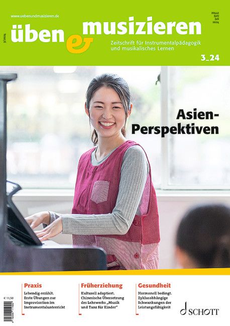 Thema Ayako Ito: Blick nach Westen. Musikverständnis und musikalische Schulbildung in Japan Ulrich Rademacher: Gemeinsame Annäherung. Der China Youth Music Competition als chinesisch-deutsches Kooperationsprojekt Zhang Yong und Ulrike Kniesner: Austausch und Verständnis. Geschichte und Hintergründe des China Youth Music Competition Richard Braun: Klavierland Korea. Ein persönlicher Blick auf die Musikausbildung in Südkorea Richard Frank: Omnipräsentes Klavier. Gedanken zur Rolle des Klaviers und der Klavierpädagogik in Japan Praxis Oli Bott: Lebendig erzählt. Erste Übungen zur Improvisation im Instrumentalunterricht Gesa Behrens: Vor lauter Bäumen… Mustererkennung beim Erfassen von Musik und Notentext Kulturpolitik Kristin Thielemann: Zukunft heißt Vernetzung. Wichtiger denn je: ein gemeinsames "Haus der Musik" für alle Musikschaffenden Gesundheit Kirsten Legerlotz: Hormone, Sport und Musik. Zyklusabhängige Schwankungen der Leistungsfähigkeit bei Sportlerinnen und Sängerinnen Digital Daniela Neuhaus, Helmke Jan Keden und Johannes Köppl: Musiktheorie digital. Neues Online-Material hilft beim Verstehen und Üben von Musiktheorie und Gehörbildung Musikvermittlung Anna Greinetz: Musikbusiness zum Anfassen. Das BEAT-Projekt als niedrigschwelliges Angebot für musikbegeisterte Jugendliche Bericht Brücken bauen mit Musik. Community Music in Münchner KinderTagesZentren stärkt die Gemeinschaft im Stadtteil (Sezgin Inceel und Ute Kurz) Facettenreiches Bild. Tagung der Initiative Musikpädagogische Forschung Österreich (MFÖ) bot einen Gesamtüberblick (Barbara Pölzleithner) Am Wochenende die Musik des Mittelalters vorbereiten. Als Musikschullehrer in der Schule - ein Selbstversuch (Jörg Sommerfeld) Früherziehung Chen Yiwen: Orff-Pädagogik in China. Möglichkeiten und Probleme bei der kulturellen Adaption des Lehrwerks "Musik und Tanz für Kinder" Diskussion Wolfgang Rüdiger: Chinesische Hochzeit!? Musikalische Annäherung an eine fernöstliche Zeremonie Magazin Kommentar Quelle Neuerscheinungen Bücher Noten Impressum