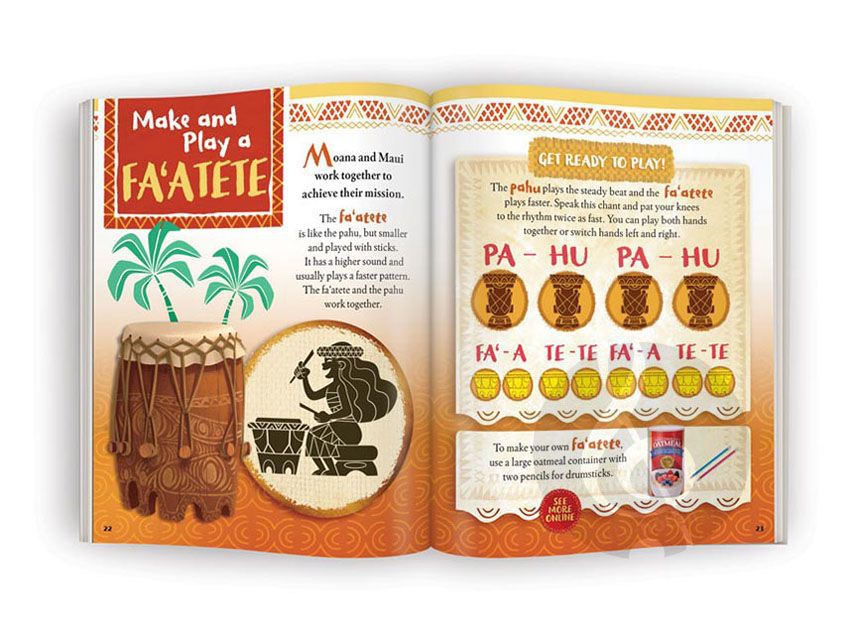 Feel the beat inside you when you play along with the Drums of Motunui! This beautifully illustrated book with online music, video, and drumming allows children to discover beat, rhythm, and the sounds of Motunui's drums through activities and creative play with characters and artwork they'll recognize from the Disney movie Moana. Includes online activities such as: video read-along, audio sing-along, and activities to explore sounds and sound makers. Singing and making music provide important benefits to children as they grown and learn. EXPLORE MUSIC books encourage children to be free to explore, play, and develop musical ability at their own pace which can establish a life-long love of music.