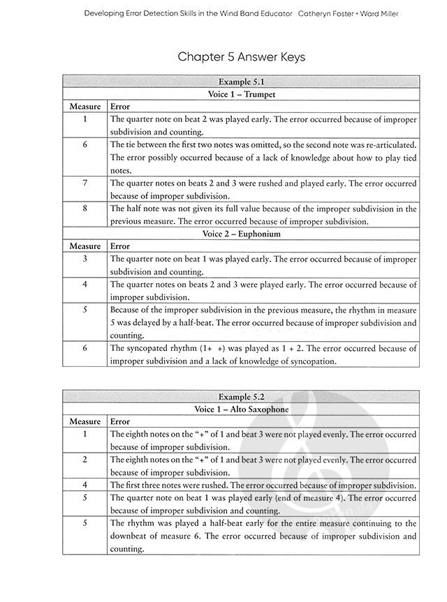Werden Sie ein besserer Dirigent, indem Sie ein besserer Zuhörer werden, indem Sie die Fähigkeiten des Blasorchesterleiters zur Fehlererkennung entwickeln. Eine der größten Herausforderungen für Blasorchesterleiter ist es, Fehler in der Probe schnell und einfach zu erkennen. Dieses umfassende Hilfsmittel bietet einen aufeinander aufbauenden, forschungsbasierten Ansatz zur Verbesserung der Fehlererkennung in vier grundlegenden Bereichen: Rhythmus, Tonhöhe, Dynamik und Artikulation. Im Mittelpunkt stehen mehr als 200 Hörbeispiele, die mit und ohne Fehler aufgenommen wurden und deren Schwierigkeitsgrad von einfachen einstimmigen Melodien bis hin zu komplexeren zwei- und vierstimmigen Arrangements reicht. Wichtig ist, dass in jeder Einheit nur ein einziges musikalisches Element, z. B. ein Rhythmus, eingeführt wird, bevor in den kumulativen Einheiten mehrere Elemente kombiniert werden. Das Buch gipfelt in einer Fehlererkennungsübung mit vollständigen Bläserensemble-Aufnahmen, die aus der Standardliteratur entnommen sind. Basierend auf den Beiträgen von fast 50 praktizierenden Bandleitern listet das Buch auch häufige Aufführungsfehler auf, auf die Pädagogen wahrscheinlich stoßen werden, und enthält Beispielunterrichtspläne zur Vorhersage und Vermeidung von Fehlern, bevor sie auftreten. Dieses unentbehrliche Hilfsmittel für Pädagogen jeder Stufe wird Sie zu einem besseren Zuhörer machen, was zu besseren Leistungen Ihres Ensembles führt!