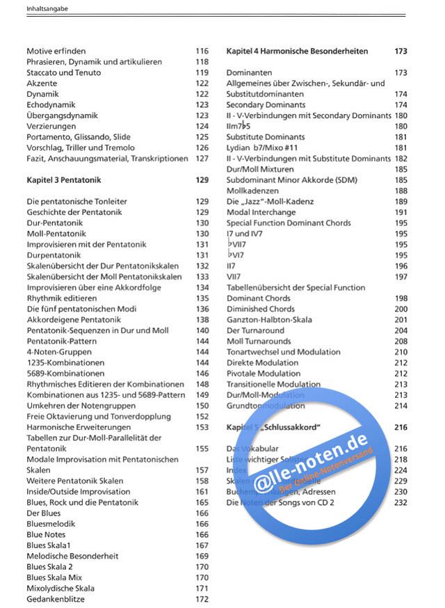 Techniken: Pentatonik, Modale Improvisation, Inside-Outside, Approach Technik, Melodic Structures, Phrasierung, Artikulation, u.v.m., dt. mit 2 CD's