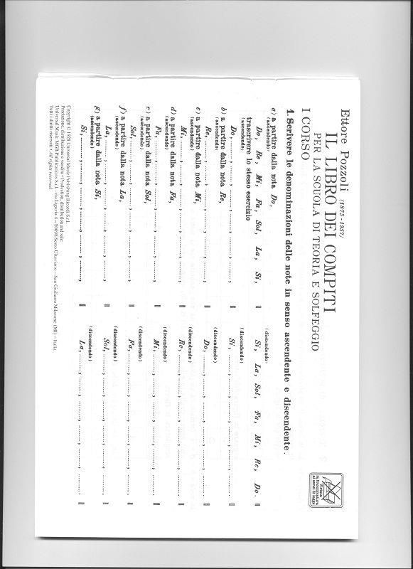 Libro Dei Compiti Per La Scuola Di Teoria E Solfeggio, Fasciolo I