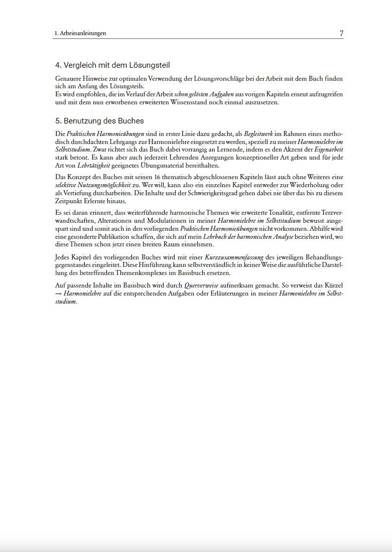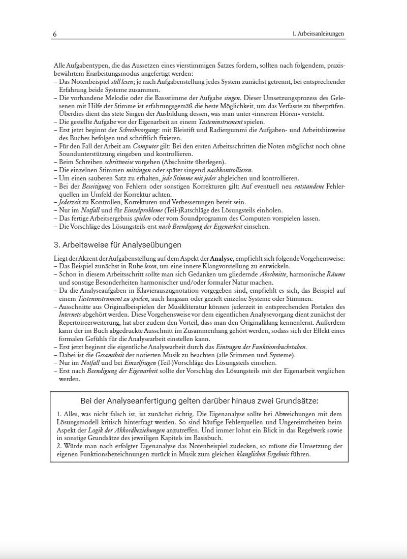 Einen besonderen Akzent setzt das Buch dadurch, dass es zusätzlich Lösungsvorschläge zu jenen Aufgaben des Basisbuchs Harmonielehre im Selbststudium enthält, deren Lösungen dort ausgespart sind. Damit gehen Autor und Verlag auf etliche Anregungen und Wünsche ein, die an sie herangetragen wurden.