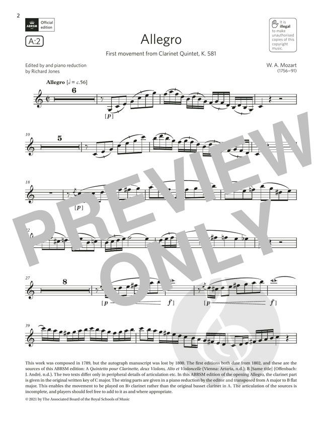 (from Clarinet Quintet, K.581) (Grade 7 List A2 from the ABRSM Clarinet syllabus from 2022)