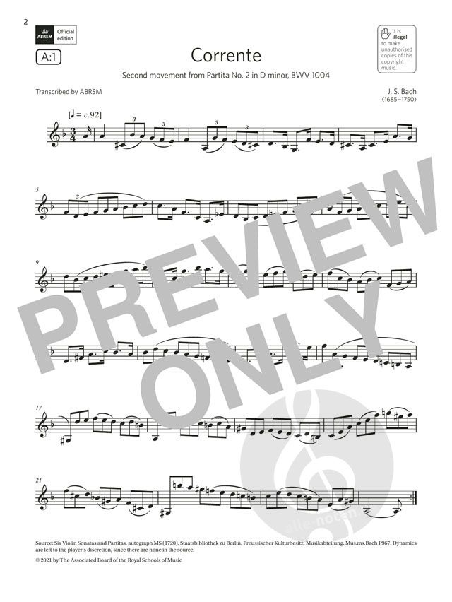 (from Partita No2 in D minor) (Grade 6 List A1 from the ABRSM Clarinet syllabus from 2022)