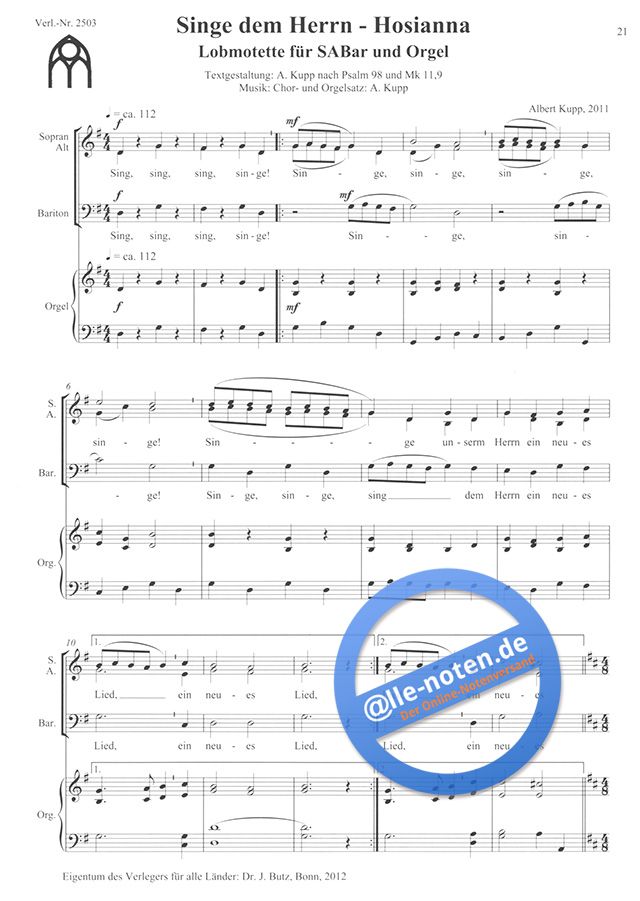 - Gesang (hoch), gemischter Chor (SATB), Streicher und Orgel