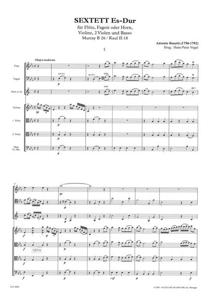 - Querflöte, Fagott, Violine, 2 Violen und Cello