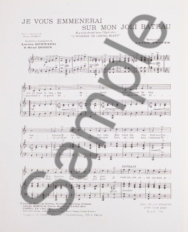 Je Vous Emmenerai Sur Mon Joli Bateau, composed by Anton Profes with original lyrics by Robert Gilbert, for Voice with Piano accompaniment.