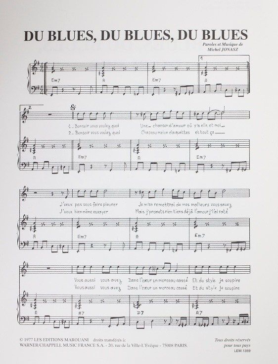Michel Jonasz's Du Blues, Du Blues, Du Blues for Voice and Piano.